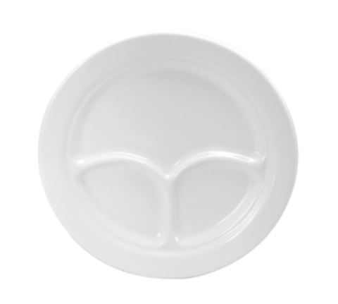Oneida® - Plate, 9-1/2" dia., round, 3-compartments, scratch & mark resistant, microwave & dishwasher safe, porcelain, cream white, Buffalo, White Ware (1 year no-chip warranty)