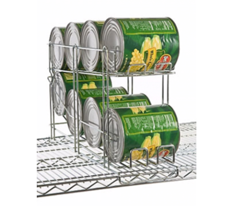 Focus Foodservice - Wire Can Rack, 24-13/16" x 7-7/8" x 13-5/16", front loading & dispensing, (8) #10 or (12) #5 can capacity, chromate finish, NSF (fits on 24"W shelves)