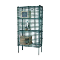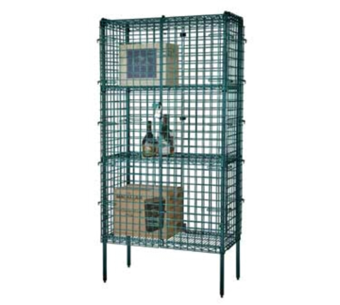 Focus Foodservice - Security Cage Complete Stationary Kit, 24" x 36" shelves with 63"H panels, for wet or dry storage, includes: (1) top shelf, (1) middle shelf, (1) bottom shelf, (2) front panels, (2) side panels, (2) back panels and assembly hardware, (4) 74" posts, (4) zinc plated leveling feet, green epoxy coating, NSF