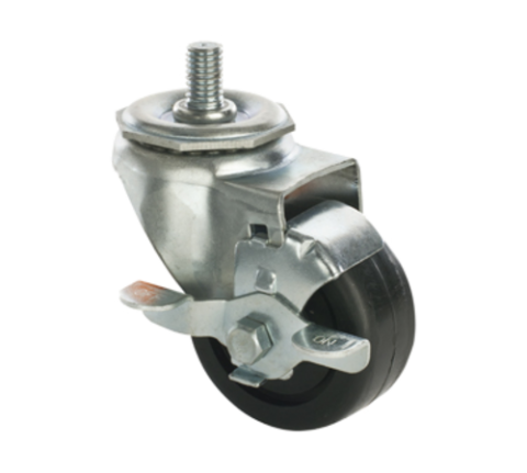 Focus Foodservice - Universal Threaded Stem Caster Set - 3" dia., 1/2" X 13, 3/4" long thread, with brakes, 200 lb. load capacity per caster, grease resistant, polyolefin wheels, NSF (set of 4)