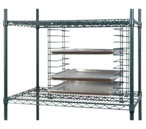 Focus Foodservice - Wire Tray Slide, 13-1/2"W x 21-1/2"H, slides mount to shelves, 1-1/2" spacing between slides, 2-1/2" slide width, (12) tray capacity, chromate finish, NSF (mounting hardware included)