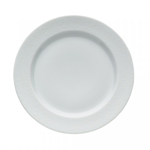 Oneida® - Plate, 10-3/4" dia., round wide rim, embossed paisley design, glazed, porcelain, bright white, Luzerne, Ivy Flourish (limited lifetime warranty contact factory for details) (Special order item, contact factory for more details)