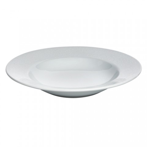 Oneida® - Pasta Bowl, 24-1/4 oz., 12-1/4" dia., round, wide rim, embossed paisley design, glazed, porcelain, bright white, Luzerne, Ivy Flourish (limited lifetime warranty contact factory for details) (Special order item, contact factory for more details)