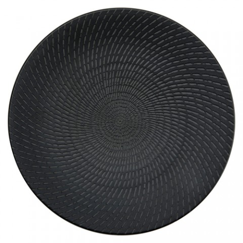 Oneida® - Plate, 10-7/8", round, coupe, spiral design, 100% lead and cadmium-free, chip resistant, dishwasher and microwave safe, porcelain, glazed finish, Luzerne, Urban Black (must be purchased in case quantities) (limited lifetime warranty contact factory for details)