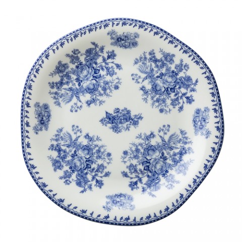 Oneida® - Plate, 8" dia., irregular round, blue floral design, warm white, glazed, porcelain, Luzerne, Lancaster Garden™ (must be purchased in case quantities) (limited lifetime warranty contact factory for details)