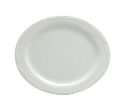 Oneida® - Platter, 13" dia., oval, medium rim, embossed surface, porcelain, bright white, Buffalo, Arcadia™