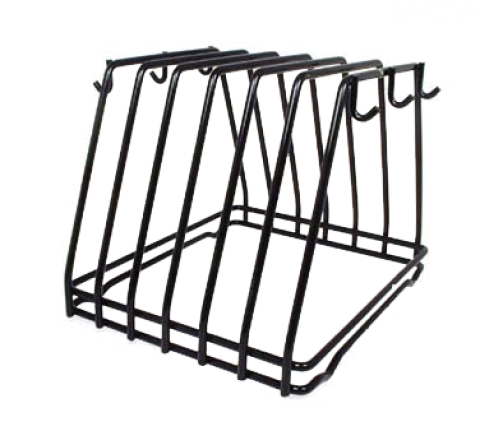 Cutting Board Rack, 6 slot, with 6 accessory hooks, heavy duty wire, black