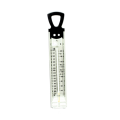 Deep Fry/Candy Display Thermometer, 100° to 400°F and 50° to 200°C, 11-3/4"L x 2"W, adjustable clip, stay-cool handle, glass tube, stainless steel case, black molded-plastic