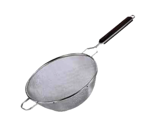 Strainer, stainless steel, double mesh, 8" bowl diameter, dark hardwood inset handle
