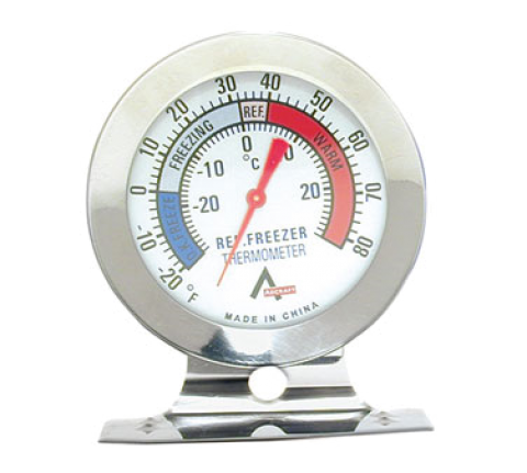 Freezer/Refrigerator Thermometer, 3" round dial, impact-resistant, shatterproof, stand or hang, temp range: -20° to 80° F and -20° to 0°C, stainless steel casing
