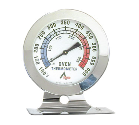 Oven Thermometer, 3" diameter dial, 100° to 600°F, can stand or hang, stainless steel and glass, NSF, HACCP