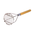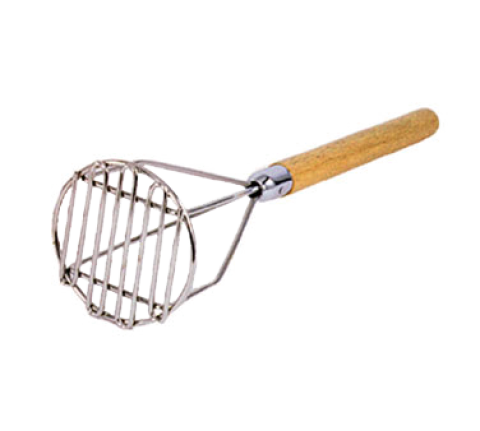 Potato Masher, 4-1/2" round head, 18" long, nickel plated rod, wood handle