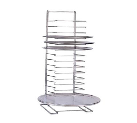 Pizza Rack, 27" high, 15 slots, holds pans 9" to 18" diameter, 1-3/8" spacing, chrome plated steel rods