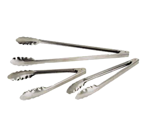 Utility Tongs, 16", standard, coil spring operated, scalloped edges, heavy weight 1.0mm, stainless steel, mirror finish
