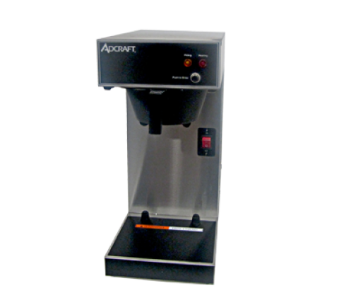 Thermal Server Coffee Brewer, single brewer, 8.5" W x 14.5" D, 3.8 gallons per hour capacity, push button brewing, direct feed hook up for non-stop flow of coffee, fits carafes up to 10" tall, stainless steel construction, non-slip base, 120v, 1450 watts, 12 amps, NEMA 5-15 (to be discontinued, contact factory for availability )