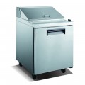 U-STAR Salad/Sandwich Refrigerated Prep Table, 27"W, 1-section, 6 cu.ft., rear mounted self-contained refrigeration, (1) door with recessed handle, insulated hinged lid, digital temperature controller with LED display, automatic defrosting, (1) plastic coated wire shelf, 3/4" thick removable polyethylene cutting board, removable door gasket, includes (6) 1/6 pans and (2) 1/9 pans, 430 stainless steel exterior, 304 stainless steel interior, (4) 4" casters, 115v/60/1-ph, 4.4 amps, 1/5 HP, 7' cord, NEMA 5-15P, cETLus, ETL-Sanitation