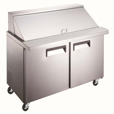 U-STAR Salad/Sandwich Refrigerated Prep Table, 36-1/4"W x 34"D x 42-1/4"H, 2-section, 9 cu.ft., rear mounted self-contained refrigeration, (2) doors with recessed handles, insulated hinged lid, digital temperature controller with LED display, automatic defrosting, (2) plastic coated wire shelves, 3/4" thick removable polyethylene cutting board, removable door gasket, includes (15) 1/6 pans, 430 stainless steel exterior, 304 stainless steel interior, (4) 4" casters, 33°F to 41°F temperature range, 115v/60/1-ph, 4.8 amps, 1/5 HP, 7' cord, NEMA 5-15P, cETLus, ETL-Sanitation
