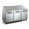 U-STAR Mega Top Salad/Sandwich Refrigerated Prep Table, 72"W, 3-section, 18 cu.ft., rear mounted self-contained refrigeration, (3) doors with recessed handles, insulated hinged lid, digital temperature controller with LED display, automatic defrosting, (3) plastic coated wire shelves, 3/4" thick removable polyethylene cutting board, removable door gasket, includes (30) 1/6 pans, 430 stainless steel exterior, 304 stainless steel interior, (4) 6" casters, 115v/60/1-ph, 8.4 amps, 3/4 HP, 7' cord, NEMA 5-15P, cETLus (special order, container buy only, contact factory for price)