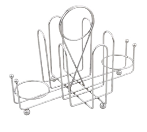 Sugar Packet Holder, 7-1/2" x 5" x 4-1/2", two packaged sugar holders, salt and pepper rings up to 1-3/4" dia., chrome plated wire with ball feet & center clip
