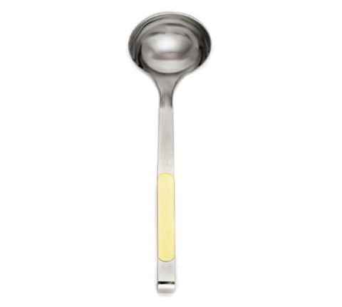 Orbit™ Serving Ladle, 4 oz., 12-3/8"L, deep, hooked handle with gold trim, stainless steel, polished finish