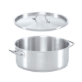 Optima® II E™ Economy Brazier, 25 qt., 17-3/4" dia. x 5-7/8" deep interior, round, with cover, welded handles, corrosion resistant, 21CT stainless steel, satin finish, NSF