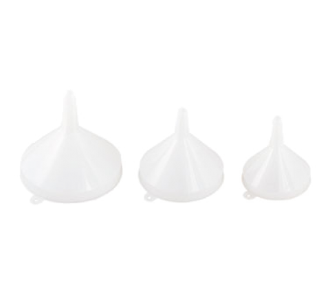 Funnel, 8 oz., 4-1/8" dia. (top), round, seamless one-piece, plastic, white