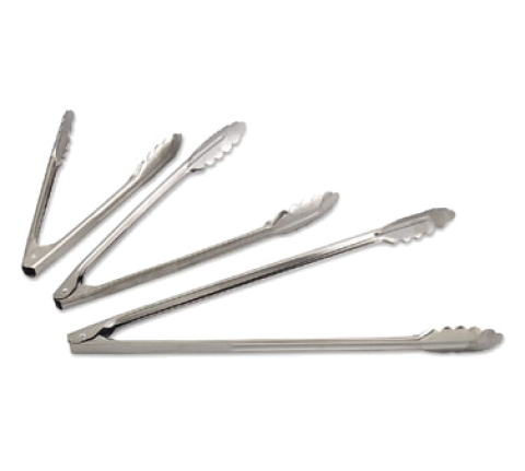 E™ Economy Spring Tongs, 12"L, scalloped edge, extra heavy weight, stainless steel