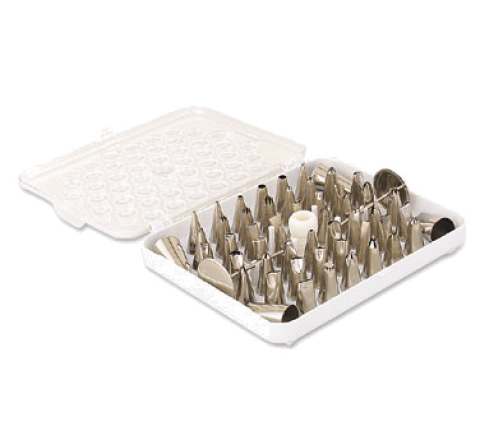 Decorating Tube Set, includes: (52) assorted stainless steel tubes with standard coupling & hinged box