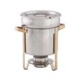 Top-Shelf™ Chafing Dish Soup Station, 7 qt., 13" x 11", round, pull-top cover, dripless water pan, food pan, & single drop-in fuel holders, stainless steel, gold accents