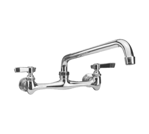 Faucet, wall mount, 8" centers, 14" spout, 1/2" NPT male inlet, 1/2" NPT male outlet, stainless steel, lead free