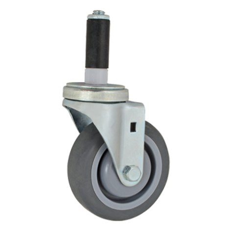 Caster, swivel stem, standard duty, 15/16"W, 4" dia., Ball Bearing, for 1" OD tubing without brake, non marking gray rubber tire with plastic hub