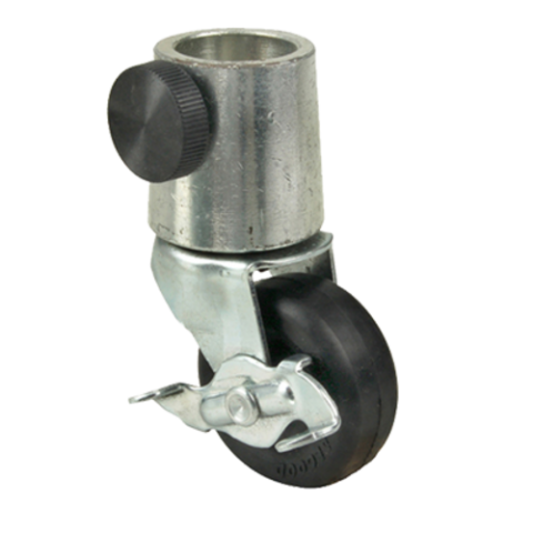Caster, 2", swivel with brake, for use on 1" OD tubing, 87 lb. capacity, steel boot with urethane wheel
