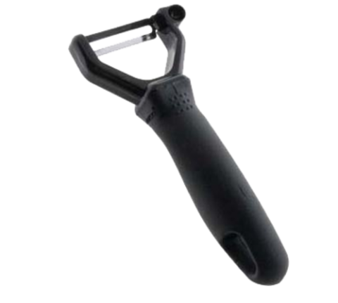 Peeler, 6-1/4", v-shaped, stainless steel blade, black santoprene handle