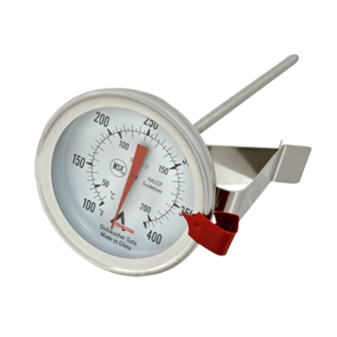 Candy/Fryer Thermometer, 2" dial, 5" stem, 100° to 400° F (fahrenheit scale only), adjustable clip, stainless steel housing