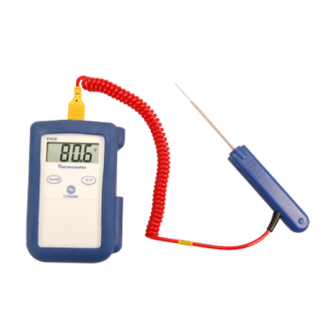 Comark #KM28/P5 Thermocouple Temperature Tester, K-type, digital, hand-held, -40° to 1000° F (-40 to 500° C) temperature range, interchangeable probes, water resistant, auto switch-off, includes protective rubber boot, reduced tip insertion probe, soft carr