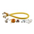 Gas Hose Connector Kit, 3/4" x 48", includes: 3/4" NPT ball valve, hardware, 3/4" NPT reducing elbow, restraining cable, & 90% reducing elbow with 3/4 / 1/2" NPT, T&S Brass