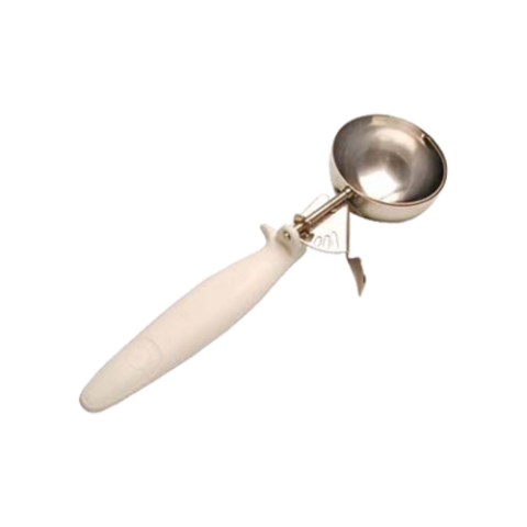 Hamilton Beach® Microban® Disher, size 6, 3" bowl dia., 4-3/4 oz. capacity, antimicrobial protection, color-coded, pan rest™ handle, dishwasher safe, stainless steel working components, white, NSF