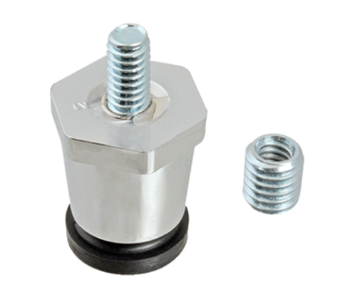 Leg, with stud adaptor, threaded, 1" to 1-1/2" maximum height, 3/4" base, plastic chrome color, rubber base