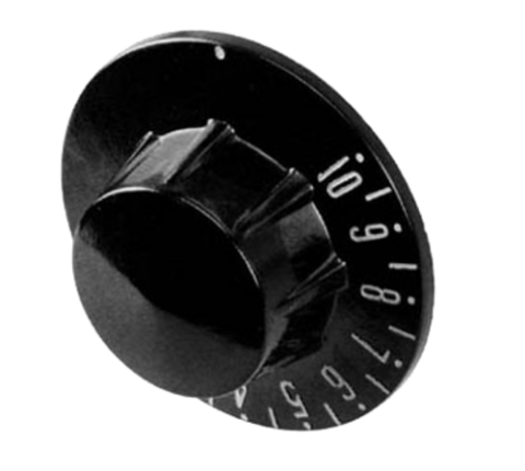 Thermostat Dial, 1-10, 2-1/4" OD, .187"D-stem, black, plastic