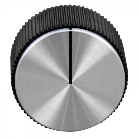 Knob, with indicator & set screw, 1-1/8" dia., 1/4" dia. hole, for infinite switch, black plastic & aluminum, (CCC item K-261), (ICS item A2583), replaces Merco: 000320, 000320SP (NET Price)