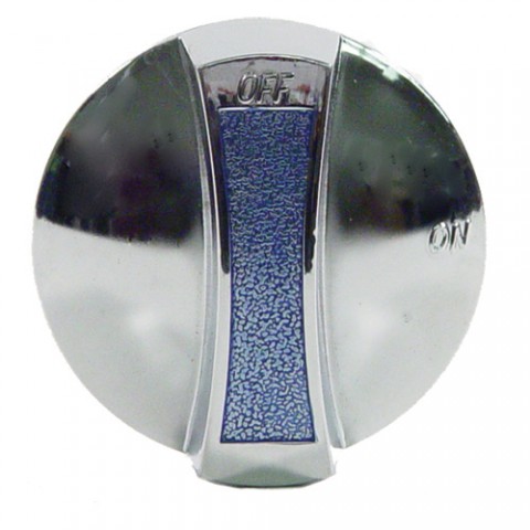 Chrome Burner Valve Knob, W/ Blue Stripe, Off/On, 2-3/8" Dia, 1/4" D-Stem, Flat Up, Has 1/4" Protrusion, Flat Down Knob Is # 22-1573, Imperial Ir Series Range,