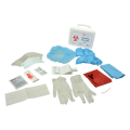 Spill Care Kit (biohazard) collapsible handle, tabs, kit includes: (1) biosafety instruction sheet,(1) face mask with eye shield (1) incident report form (1) pair of vinyl gloves (1) pair skid resistant shoe covers (1) plastic scooper/scraper (1) poly gown - 44" x 36" (1)pouch red-z fluid control solidifier (1)red biohazard bag with twist tie 10" x 12" (1) sani-cloth wipe (2) c-fold paper towels (2)sani dex hand wipes