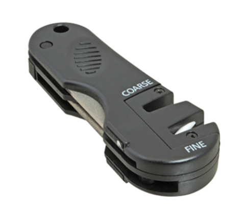 Accusharp® Knife/Tool Sharpener, 4-in-1, 4"L, retractable diamond-tapered rod, flat diamond stone, coarse & fine blades, pocket size, plastic body, black