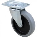 Caster, 4" dia. x 1"W, heavy-duty, swivel plate, 5" load height, includes (4) screws, black plastic hub, gray rubber wheel (Rubbermaid® FG1011L20000, fits 1011, 2646, 9T13)