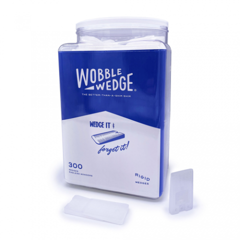 Wobble Wedge® Tapered Installation Shims, interlocking, stackable, hard nylon, translucent (jar of 300 shims)