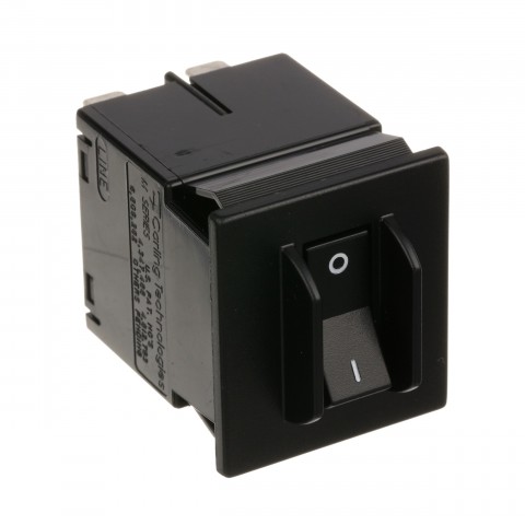 Black Rocker Switch, On/Off, 25A, (4) 1/4" Tab Terminals, Markings I/O, Carter-Hoffman Cd27