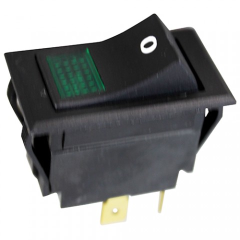 Rocker Switch, Lighted (Green Light), On/Off, 10A/250Vac, 15A/125Vac, (4), 1/4" Tab Term, Hatco Hdw-1(B), Hdw-2(B), Hdw-3