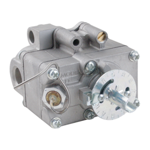 Gas Type 1 Thermostat, FDO-type, 48" capillary, 7/16" tubing rear inlet & outlet, 150° to 550° F temperature range, 3/16" x 14-3/4" bulb, dial not included, Robertshaw