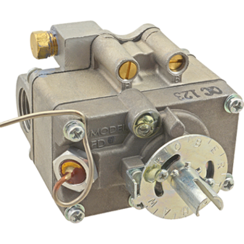 Gas Type 1 Thermostat, FDO-type, 48" capillary, 1/2" NPT side inlet & outlet, 150° to 550° F temperature range, 3/16" x 14 to 3/4" bulb, dial not included, Robertshaw