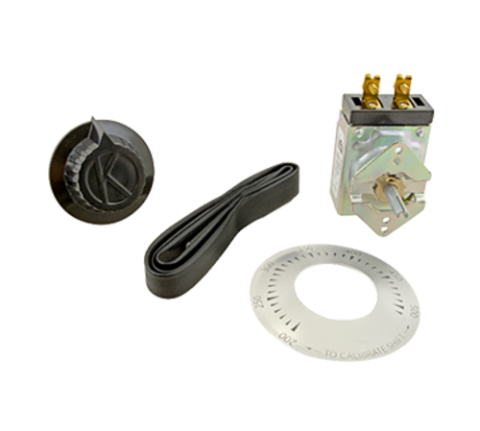 Thermostat Kit, K-Type, SPST, 30" capillary length, 5" bulb length, 5/16" bulb OD, 200° F -550° F temperature range, includes: knob, dial plate, hi-temp sleeve, (2) screws, 250v, 25 amp